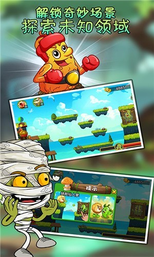 植物精灵暴打僵尸是一款非常考验脑力的冒险游戏。在这一款游戏中,它有很多场景和关卡,玩家可以控制自己的角色,不断地跳跃、向前冲,在这个过程中会有许多障碍和地形阻碍你前进。同时,还有更多的怪兽boss也需要你去消灭。植物精灵暴打僵尸游戏特色: