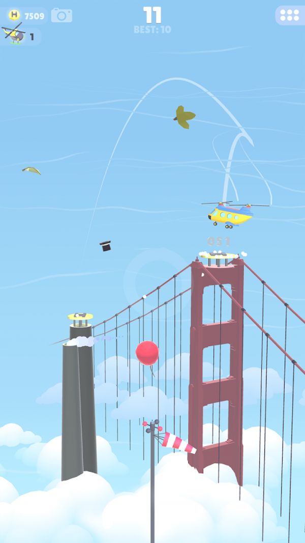直升机弹射降落手游是一个有趣的游戏,你可以从一个停机坪跳到另一个停机坪。