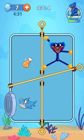 游戏的可玩性非常的高,有多种不同的卡通元素,每一个角色的设计都非常的个性特色在这里还有非常丰富的故事情节,这款游戏非常的烧脑,每一个情节关卡玩家都需要找到最好的解决办法,灵活的转动你的大脑,成功的闯过关卡,来拯救出自己的美人鱼,获得丰厚的游戏奖励。