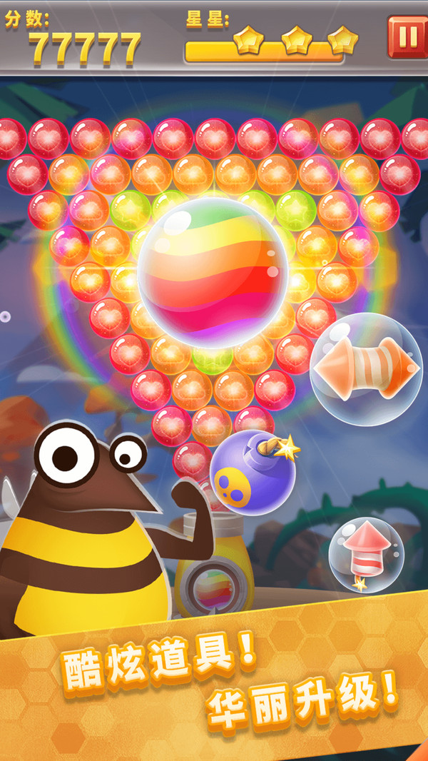 1、在玩的过程中灵活控制泡泡轨迹,畅爽游戏的同时更有大几率的获取免费道具;