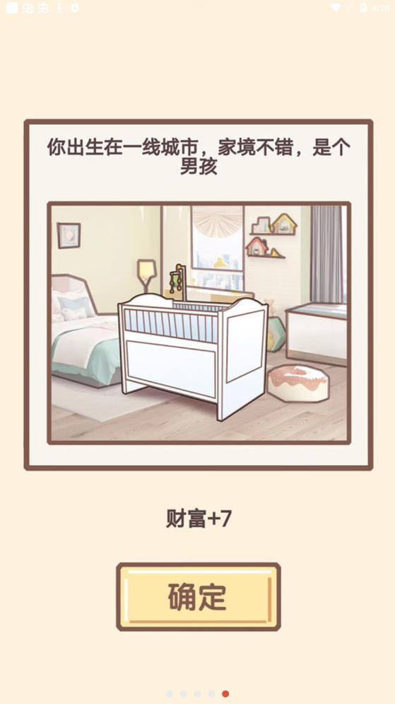 之后玩家便可体验你这精彩人生,游戏模拟采用分屏式设计,在界面上方显示着你这一路的成长,界面下方则是文字性的说明。在模拟人生成长的过程中,玩家的财富、声望、快乐和福气都会发生变化,并且在这里人生的岔路口会有多个选项选择,任何的一项选择,对于玩家今后的成长都有不同程度的影响。