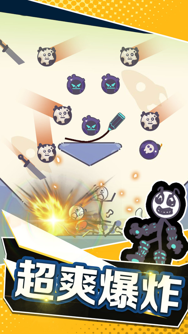 炸飞火柴人是一款玩法非常独特的画线闯关小游戏,整个游戏关卡场景都是采用的手绘风格题材打造,玩家需要划出各种不同的线条,引导关卡中炸弹滚向火柴人,成功的将火柴人炸死掉即可通关。炸飞火柴人游戏关卡内容及其丰富,操作起来是没有任何难度的,还有更多精彩好玩的内容等你来免费下载体验!炸飞火柴人优势