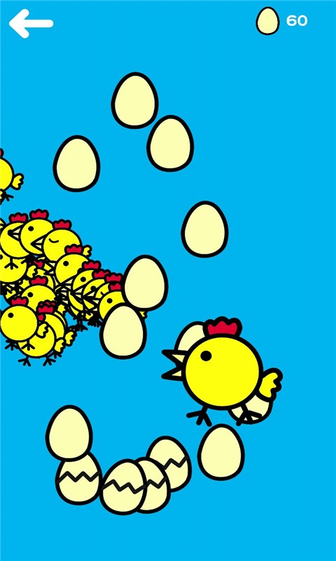 快乐小鸡爱下蛋很休闲的游戏。游戏里有很多可爱的小鸡。随着母鸡妈妈主角不断下蛋,玩家可以操纵手机屏幕拥有不同的绘图体验。当母鸡在屏幕上下蛋时,我们需要不断地选择和区分它们,并给鸡蛋添加不同的颜色。