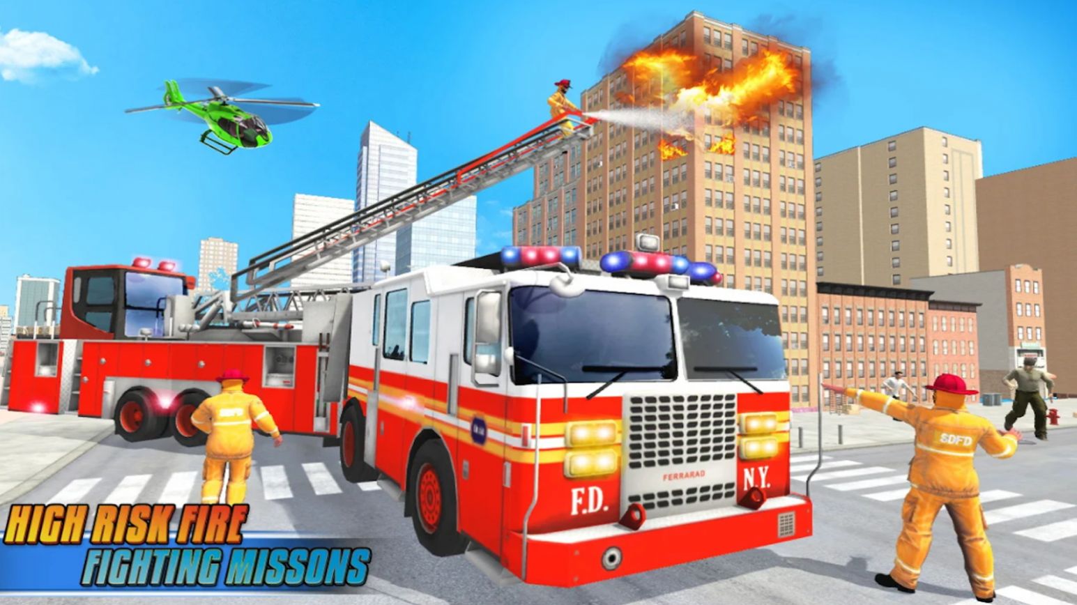 3、当一名光荣的消防员,真实消防车模拟驾驶灭火游戏中的城市平民的安全都靠你了。