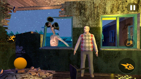 2、探险的途中你会遇到头是警笛形状的怪物,你需要拿起手中的枪将他们全部消灭;