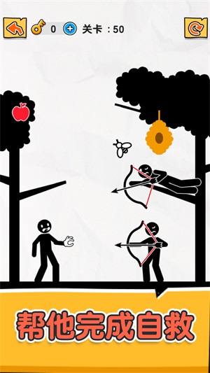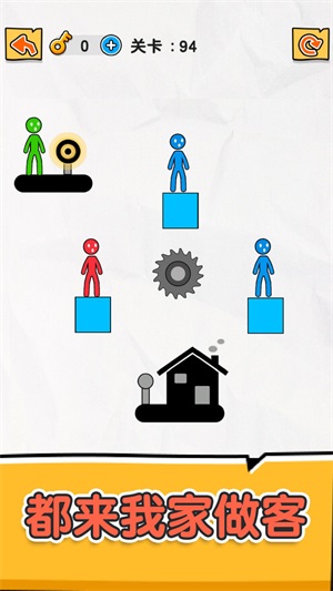 2.在关卡里面需要灵活的走位和移动,突破自己的极限,把火柴人拉到指定的位置上去。
