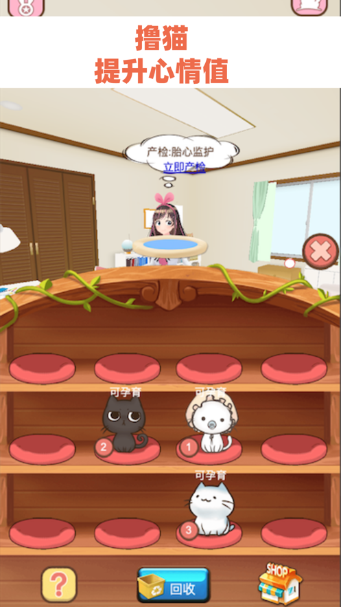 集孕期知识、胎教音乐、40周胎儿变化,附加撸猫、装扮娱乐,模拟养成类游戏;