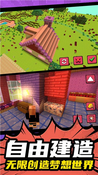 超大世界自由创造,利用各种道具和材料自由建造房屋,快来建造一个属于你自己的房子吧!