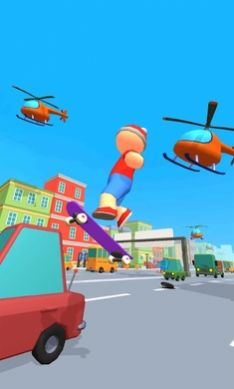 1、Q版的画面,有趣的玩法,考验你的滑板操作之旅,掌握技巧才能获胜。