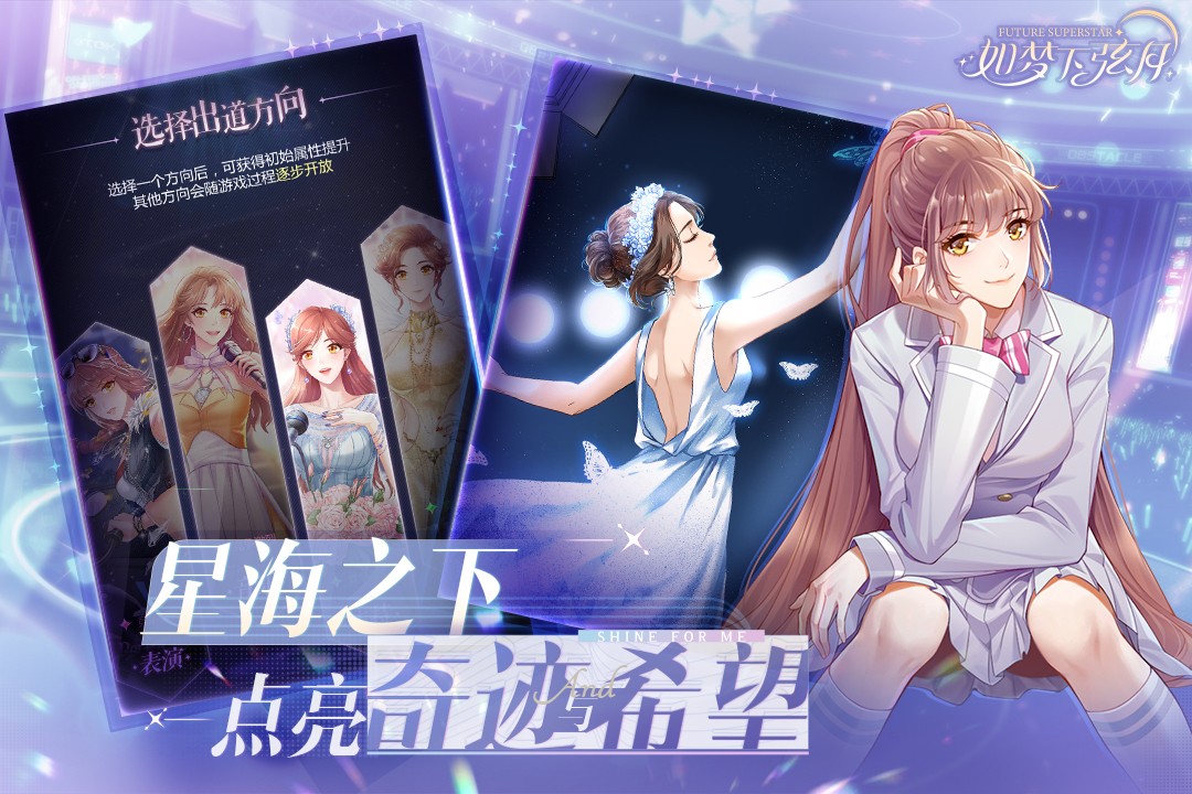 如梦下弦月游戏是一款二次元画风的恋爱养成类游戏,玩家将以偶像练习生的身份开始,为了找出你姐姐意外死亡的真相,以及你身世之谜,你将独自一人踏入娱乐圈,开启自己的精彩人生。主线剧情和支线剧情紧密相连,超多隐藏的剧情等你来触发。