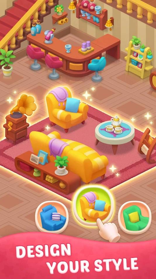 合并庄园冒险(Merge Manor Adventure)这款游戏的玩法也是比较的经典的,玩家在游戏当中进行合并消除,会获得一定的的收益,玩家在得到自己的收益之后,就可以为自己的庄园进行不一样的装饰,在游戏中玩家就可以去成为建筑的大师