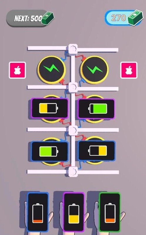 手机充电吧(Charge It Up)这款简单的经营的游戏,玩家在游戏当中会有着自己的一家小的的店铺,玩家在游戏当中的经营的方式也是超级的简单的,就是将顾客没有电的手机进行充电,玩家的店铺的充电桩会轻易的将手机的点充满,超级的休闲