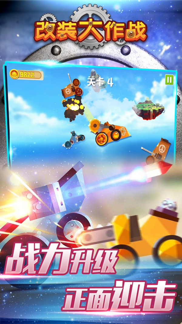 改装大作战是一款比较热血刺激的大型战争类的游戏,玩家在这款游戏中可以驾驶巡航战舰,守护自己的岛屿的和平,不被受到伤害。玩家可以使用自己的战舰上了各种武器去消灭企图伤害你的敌人。这款游戏有着逼真的特效和声音,是一个不错的小游戏。改装大作战游戏介绍