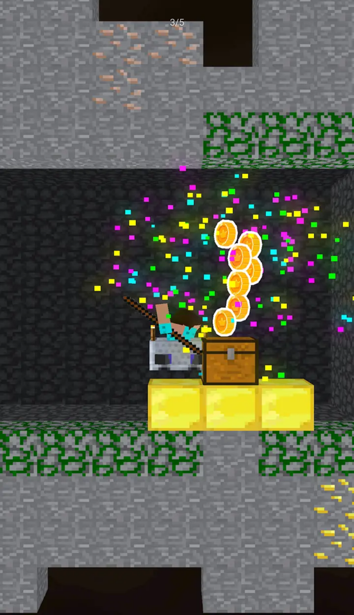 1、类似于经典的罐子攀岩游戏玩法,新像素绘画风格,控制罐子里的史蒂夫挥舞着大锤攀登,收集金币升级设备;