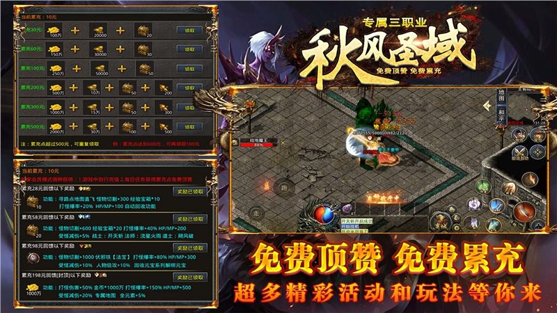 本服无充值地图,无每日充值,无暗坑,无隐藏消费,三职业平衡