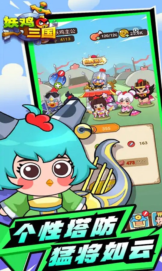 妖鸡三国游戏是一款以三国为主题的塔防游戏。以Q萌画风重新演绎三国奇遇,剧情故事丰富,关卡挑战。我们可以收集丰富的角落颜色来发起个性化的塔防挑战,拥有极其丰富的挑战玩法,随时可以加入进来享受体验。可爱有趣的三国世界还有很多精彩的战斗等着你加入!妖鸡三国游戏介绍