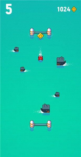 鸭子过河必须要想尽办法让小鸭子远离这些障碍,不要被鲨鱼追到,否则即为游戏结束。随着游戏通关数的增加,游戏难度也更考验手眼的相互配合,游戏金币奖励也更多。
