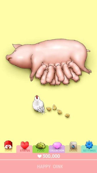 幸福呼噜 Happy Oink是一款养成类游戏。在游戏中玩家要通过抚摸一头肥肥的母猪来累计好感度,通过消耗好感度来解锁母猪新的动作和功能,到后面甚至还能通过消耗好感度来解锁新的同伴,组成一个跨越种族的大家庭。要是喜欢这款游戏的话就赶紧下载体验吧。
