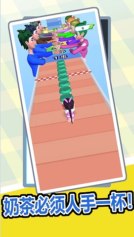 玩家拾取道路中的奶茶杯,装满奶茶,盖上盖子,贴上贴标,还有的关卡,可以将奶茶加更多的调料,过程中要注意售出障碍物, 不一小心,奶茶会在路途中售出,无奖励可得!躲避障碍物,到达终点,分给终点等候的朋友们,分的越多,奖励越多!
