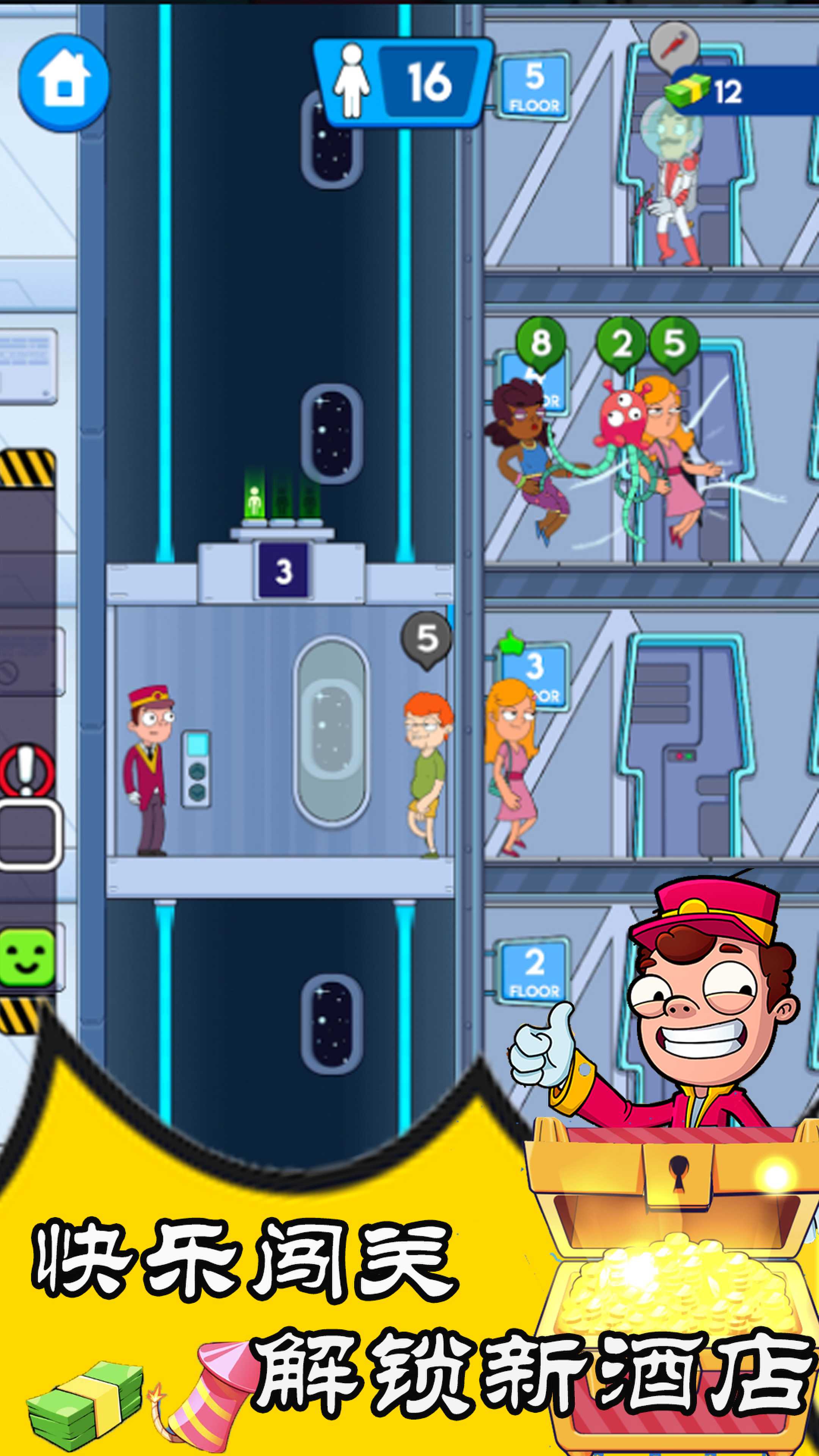 在这里的玩家是酒店电梯管理人员,你需要照看电梯上下的情况,但是在这之间会发生很多离奇事件,不过需要你去避免他们开始!