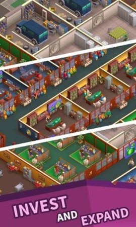 3、还有各种游戏玩法要体验。投资和雇佣更多的员工来帮助你打理银行,高效快速的发展。