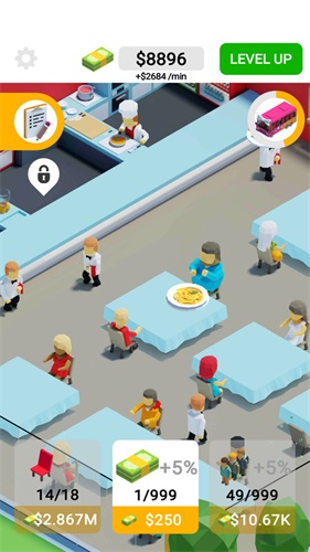 餐厅城市大亨游戏是模拟经营类型,让玩家不断扩大餐厅的经营面积,丰富经营品类,以此来招揽客人,赚取更多收入,玩一玩,玩一玩。当你再次打开它时,你可以看到金币数量的增加,并且可以建造许多不同风格的餐馆。