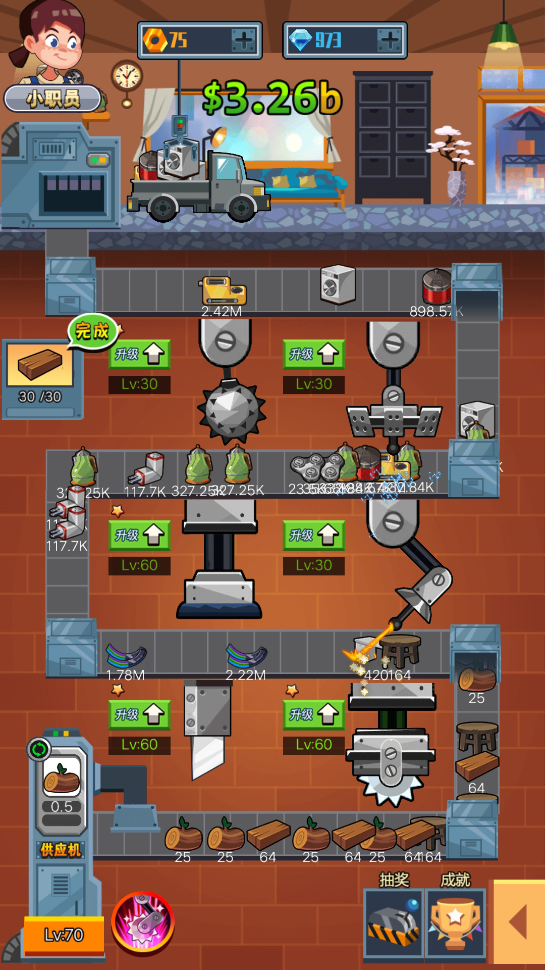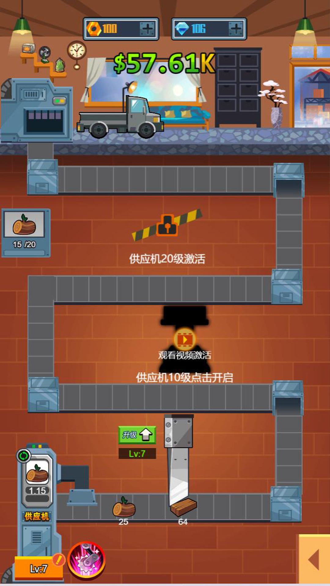 2、收获一定的金币之后,你可以升级机器,这样可以增加制造产品的效率。