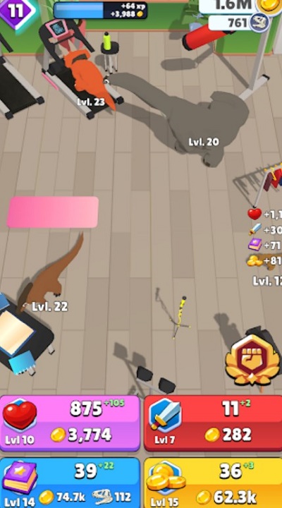 1.这款全新升级的游戏添加了许多玩法,除了可以在游戏中经营健身房之外,玩家还可以体验冒险和战斗,这些玩法都是很刺激的;