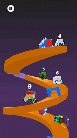 3.在充满障碍的螺旋楼梯上开始跑酷比赛,你应该尽力超过你的对手。