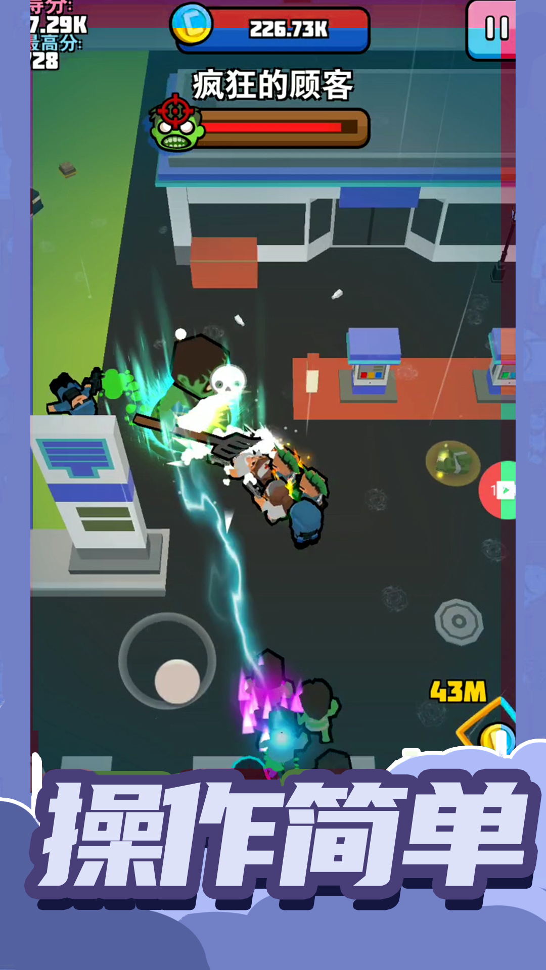 1、滑动手指就能够指挥突击小队移动,英雄会自动攻击僵尸。