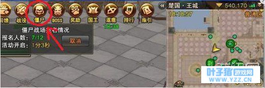 首先在18点活动提示出来以后,点击小地图旁边的“僵尸”图标(报名成功以后图标下面会出现开启倒计时和报名人数)。