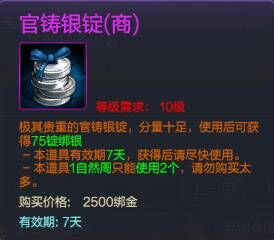 国家民心成福利,盛世绑银奖励多 此次更新后,国家的民心值也会也将会影响到玩家的实际收益。你需要时刻关注“国家大事”,才能获得最高等级的绑银奖励。具体来说,只要玩家所在的国家民心值超过40000,国家就会进入和平或者盛世状态。此时,玩家可以前往王城太守附近寻找聚财鼎(340,330)领取绑银礼包啦。绑银礼包里面含有50两或一锭的绑银哟! 楚楚要提醒大家,绑银的领取数量是由国家的民心值高低决定的,这意味着每一个国民的切身利益将与国家的实力息息相关。因此,每一个玩家要时时关注所在国的民心值情况,在国家进入盛世状态时,可以领取到更多的绑银哦。 图2:盛世太平将让全国子民获得更多福利 化炼奖励将增加,绑金也可换绑银 在游戏中,玩家常常能得到“可化炼”的装备。将3件可化炼的装备放在轮回葫芦中,即可转化成材料和绑银。更新之后,玩家通过化炼装备得到的绑银将大幅增加!化炼之后的宝盒总价值得到了提升,一些不用的装备进行化炼将更加划算。 通过以上的方式,玩家可以免费得到大量的绑银。如果觉得绑银还不够的话,也不用担心。本周更新后,将可以直接用绑金换取绑银。这意味着玩家每周可以使用5000绑金或者金子,购买150锭绑银,足以满足玩家对绑银的需求。 图3:新道具上线,绑金可以换绑银 本期楚楚周评播报完毕!绑银大户宁有种乎!跟楚楚一起上线领绑银吧! [编辑:Tya、小爱]