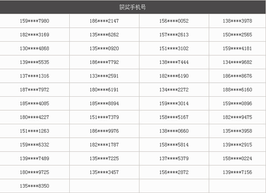 截止到4月11日24:00,此次问卷调查收集到了很多玩家的意见和建议!感谢大家对《西楚霸王》的热爱和支持!我们在完整且正确填写的问卷中,随机抽取了49名幸运玩家,送上含有限量时装的“霸王秘藏稀有礼包”! 获奖名单如下: “霸王秘藏稀有礼包”内容: 奖品领取: 自获奖名单公布之日起,3个工作日内,奖励将以礼包码的形式,通过短信发放到玩家在问卷中填写的手机号码上,请大家注意查收短信。 获得礼包的玩家可前往禹州城(238,294)寻找散财童子,输入礼包码即可兑换奖励道具“霸王秘藏稀有礼包”。 如果您有任何问题,请联系官方客服。官方客服电话:020—89166150。 祝您在游戏中玩得愉快! [编辑:Tya、小爱]