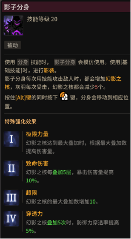 小猪在之前已经为大家介绍了《超激斗梦境》中的四位角色的转职分别是芙兰>>>、詹姆斯>>>、薇格>>>和妮可>>>,今天小猪就带大家看一看最后一个我们来自阴影中的王者—灰羽。 阴影之王能够将邪恶的力量放大到极致并利用影子铲除敌人。阴影之王拥有专属飞行战斗方式,同时能控制释放体内诅咒,化身魔神,顷刻间破碎天地。 PS:注意这里只是简单的给大家介绍一下两个专职方向的技能,更多的是主观分享,仅供参考。 ![]() 灰羽的转职有2种,阴影之王和阴影木偶师! 那么下面小猪先重点说一下阴影之王前期要点满的几个技能。 首先是暗翼扫击AOE聚怪!可以将身后的怪聚集到身前,同时产生影晶,伤害很可观。 (影晶:是驱动核心大招的主要能量,所以如何运用产生影晶的技能在适当的时候施展大招你你需要考虑和练习的。) ![]() 鸦仆天降,可以搭配普攻产生的多余乌鸦,加上鸦影缭乱位移技能,也可以产生不错的AOE伤害(这个可以在空中使用哦) ![]() 无光冲刺,生成影晶技能之一。可以将怪进行恐惧,即使一些精英怪 Boss会让其静止(控制时间受技术点数影响)。 ![]() 阴影之王(被动),消耗影晶的大招,必须先点满,加的属性不是一点两点 最后的30%穿透可谓是神技。最帅技能!!!!! ![]() 说完阴影之王接下来我们来说一说阴影木偶师这个职业。 阴影木偶师这个职业能利用分身造成高额伤害,拥有恐惧(无力化)技能叠层爆炸输出。职业优点:恐惧控制多。缺点:大部分技能需要站桩 下面小猪再来重点说一下几个阴影木偶师前期必要点满的技能! 影牢:聚怪技能,前期建议一直带,点满可以增加攻击范围。 ![]() 黑暗气息:很强的AOE,根据鼠标拖动扫射。与影子配合能爆发出强大的伤害。 ![]() 影子分身:这个被动加伤害、暴击伤害量、防御穿透,增加很多伤害强烈建议必须点满 ![]() 暗影增幅:大量增加伤害技能,黑暗气息和暗火十分强,一定要点满增加伤害的主要被动! ![]() 小猪总结了一下,阴影木偶师能通过分身产生不同的效果打伤害打控制。叠被动去产生高额伤害。并且通过跟影子的配合很多技能能打出AOE的伤害,算得上刷图利器。而阴影之王主要是通过变身后来打出高额伤害,在前期sp点不是很充足的时候单刷有些疲软,但是由于阴影之王又有着独特的飞行技能,和更多的控制技能,所以能够在pk战有更好的表现。具体怎么选择就看小伙伴们的喜好啦! 以上是小猪在测试服的体验感想,超激斗梦境五个人物转职都已经介绍完毕,各位可以根据每个职业的特点来进行选择,不过由于目前游戏还处于测试阶段,不排除之后会有内容在正式服做出修改,所以一切以正式服为主。 更多超激斗梦境信息,请关注叶子猪超激斗梦境官方合作专区。 |