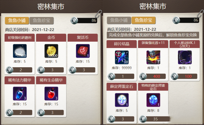 哈喽,大家好,我是CC天分丶。超激斗梦境本次也是迎来了大更新,其中出了一个新活动,叫密林垂钓记。可以兑换的奖励也是非常多,其中最珍贵就是装备强化券+11,其余值得兑换一些特殊的薛定谔鉴定石和薛定谔鉴定石,以便于加强武器、修改词条提升战斗力。 那么这个活动怎么能快速地拿到这些奖励呢?观众姥爷请往下看。 时间分配 从上面的规则来看,这个活动每天只能垂钓120分钟,如果想要继续垂钓的话就要用金色传说鱼饵了(金色传说鱼饵特殊道具,使用30分钟的鱼饵垂钓才有概率获得)。 一天的垂钓时间是120分钟(玩家可以利用钓鱼的时间去清空疲劳)。垂钓时注意鱼饵的选择,30分钟鱼饵2星鱼、60分钟鱼饵3星鱼(探子兄提示:60分钟鱼饵也可以出4星鱼哦!)、120分钟的鱼饵会出4星鱼,鱼的等级越高,获取的鱼鱼币越多。这些鱼饵的选择主要看你的常驻垂钓任务列表到哪一步了。 日常任务完成后会给60与120分钟鱼饵的,大家要是想使用120分钟鱼饵就要上线先去参加2场竞技场的玩法,获得鱼饵后立马使用,这样可以节约时间。60分钟鱼饵也是一样,上线先去打2个副本获取到2个60钟鱼饵立即使用(具体使用哪个鱼饵大家要跟常驻任务联系起来。毕竟常驻任务给的代币是很多的)。 奖励兑换 上面就是这个活动可以兑换的奖励了,密林集市的奖励分为鱼鱼小铺和鱼鱼珍宝2个商店。大家必须要把鱼鱼小铺的奖励全部兑换完了以后,才能解锁鱼鱼珍宝商店兑换奖励(与之前的奥特曼活动相同)。 鱼鱼小铺里的强化剂、金币、复活币等兑换完需要145个代币,然后开启强化券的兑换,也就是说要兑换装备强化券+11最少需要545个代币。 虽然看起来兑换装备强化卷+11对于545个代币有点多,但实际上常驻任务里给的代币就足够了。不是说一定要紫色的120分钟鱼饵才是最好,这个鱼饵选择大家根据自己的常驻任务来选择,尽快的做完常驻任务这些奖励都能拿到的(个人觉得奖励选择肯定是奔着强化券去,然后碎片结晶和鉴定石还是根据自己的情况来选择,至于坐骑嘛,可以在方舟一号硬币商店里兑换自行车)。 感谢英雄们的观看!最后记得进游戏去钓鱼哦~ |