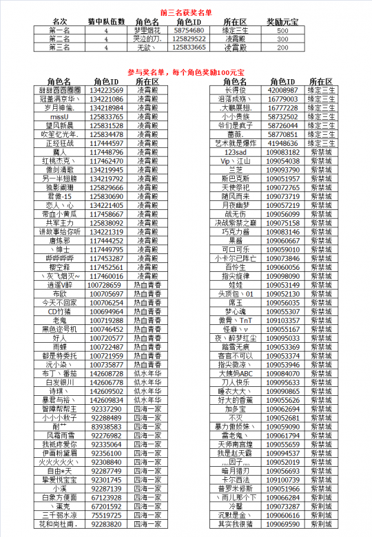 亲爱的玩家: 官方论坛活动“你我的欧洲杯,8进4竞猜赢海量元宝”活动已圆满结束,感谢所有玩家的热情参与。奖励已发送至所有获奖的角色,玩家可打开游戏,点击左方的“商城”后,点击商城下方的“提取元宝”按钮即可进行提取奖励的元宝。 下面公布获奖名单 恭喜以上玩家之余,官方将在论坛分别与欧洲杯同步进行8进4、半决赛、决赛的竞猜活动,每个角色都可各参与一次,请大家支持参与! 《画江山》运营团队 2016年7月7日 [编辑:Zorro]