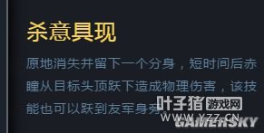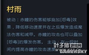 技能加点与分析 Q,斩腥 后跳时具有免伤效果,利用这点可以规避例AOE和指向性技能(例:埼玉老师的认真一拳伤害) 该技能前期只需要一级,主要就是利用一段无敌和二段突进(一段无法无视地形,二段可以)来进行切入和逃生。 该技能一、二段均可以触发E的效果。 前三级时视情况点1J(必须) 连招顺序推荐——Q→Q W,杀意具现 原地消失大概0.8s从指定单位背后落下(说是头顶其实是背后),消失期间无敌没有任何抬手动作,无论是点队友分身骗技能或者利用对方施法抬手骗技能均为完美技能。是赤瞳主要切入技能没有之一。 技能伤害成长并不优异,主要利用点位切入和逃离、骚扰。 加点推荐为第二个加满技能为佳。 连招顺序推荐——W→普攻→Q→Q→普攻 E,村雨 赤瞳的灵魂核心,配合装备可以达到完美真穿,被动减速效果并不明显不过有总比没有好,被动效果减甲和伤害叠加、单叠最大次数为3,使劲破甲效果可以一直堆叠至技能持续效果消失,配合断裁剪刀可以达到真穿效果。主动增加攻速,可以让赤瞳装备初始不用优堆叠攻速、并拥有更多的选择。 技能被动伤害堆叠,破甲效果优异。技能可以让Q/W/R命中敌人时均附带一层被动(被动魔伤不想收破甲加成) 加点为主点技能,优先点满为佳。 连招顺序推介——万能 R,葬送 前期优势核心技6J-10J期间,可以说只要看到半血就R,基本人头到手。除了根据对方血量附加斩杀伤害之外,E的被动会使得该技能在伤害之后还会追加一次伤害,蓄力时间为0.8s。 连招顺序推荐——R→Q→Q、Q→Q→R
