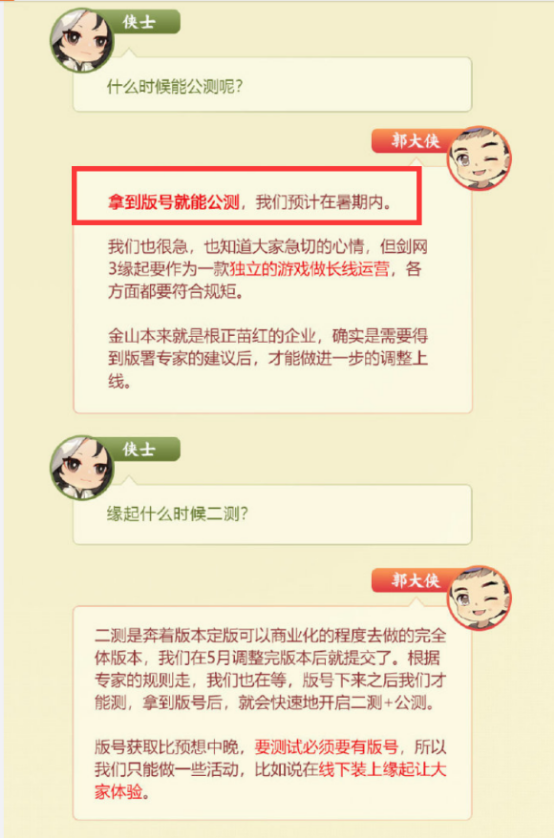 玩家从郭炜炜访谈中发现了不少盲点。官方4月27号说引擎升级所以推迟二测,但是郭炜炜线下又说是卡版号,结合缘起官方发的加班图,最有可能的原因就是引擎升级过头了,上面觉得跟送审的是俩不同的游戏,5月份重新交上去之后,之后就尴尬地卡住了。