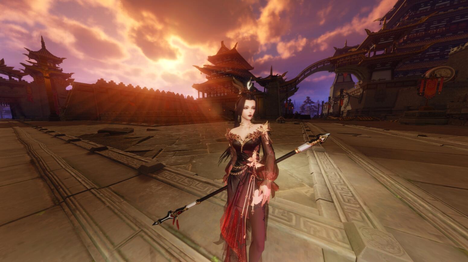 今天分享几张天策玩家的插画作品,夕阳下的军娘。黑色的军娘真的很帅啊!