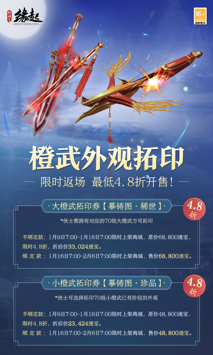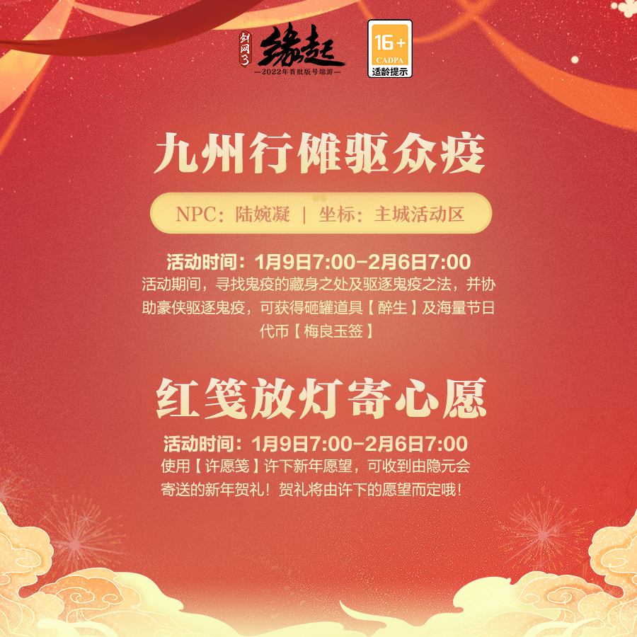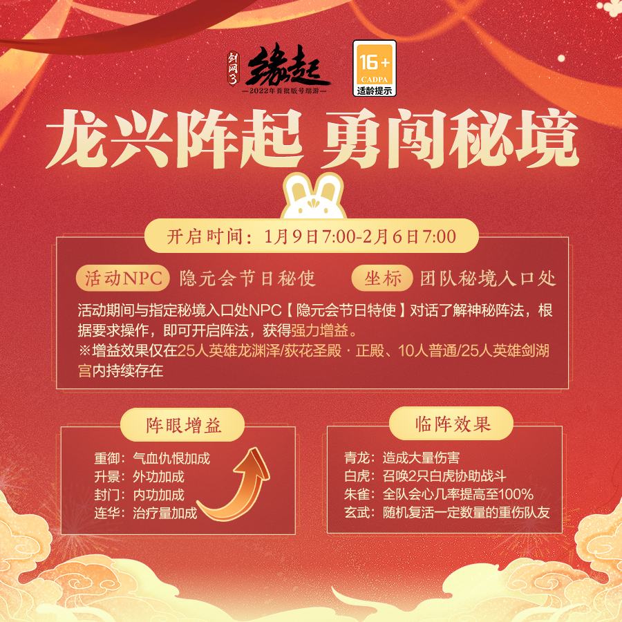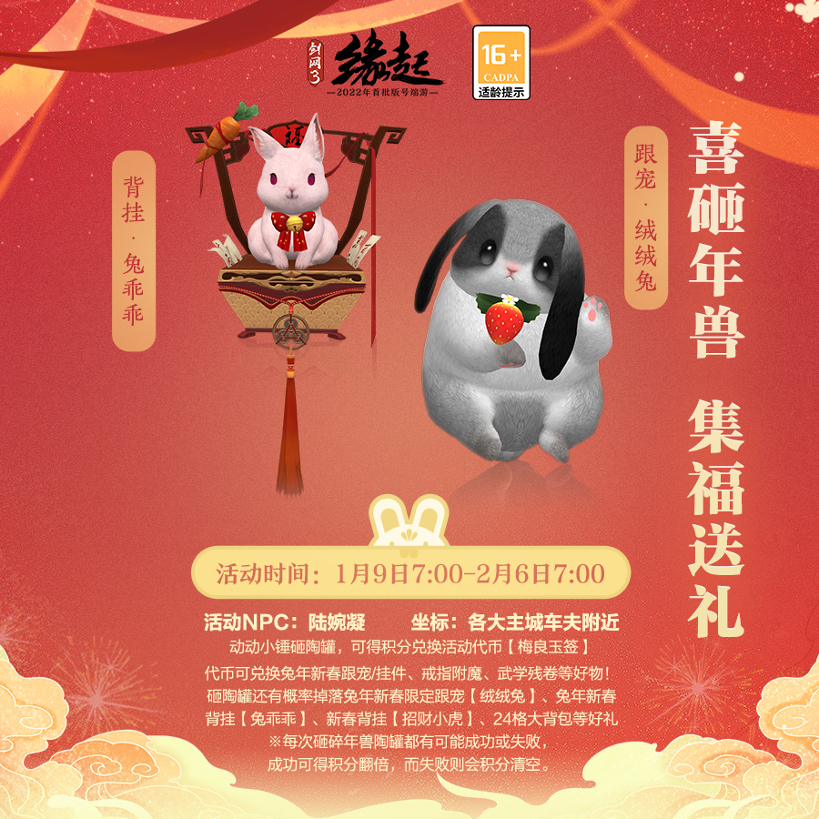 《剑网3缘起》昨日进行了大版本更新,新春盛典随之开启!海量活动与奖励不容错过!为了防止遗漏某些精彩内容,今天为大家整理了昨日更新的主要内容,走过路过千万不要错过啦! 【全民养老季 休闲更轻松】 新年新气象新展望,《剑网3缘起》全民乐享休闲养老季上线! 强减负、尽优化、上玩法、护萌新、有搞头,五大调优革新创造更轻松、更简单、更好玩的游戏环境,打造休闲养老武侠网游!萌新装备无痛过度,调整副本难度进阶更丝滑,橙饰、附魔轻松拥有,降低玩法门槛增加产出;抓马驯养系统随机属性、PVP野外玩法新玩法即将开放、尚武遗迹增加白天练习模式随时随地拿奖励,更有赛季挑战加码,达到指定伤害即可获得海量寒川紫贝、银辉玉玦!更多详情长图先睹为快! 【万福添新岁 阵起赋增益】 瑞兔呈祥,万象迎春,兔年新春盛典活动开启! 新春签到送好礼,参与活动共贺春节,必得兔年限定跟宠「绒绒兔」、兔年背挂「兔乖乖」、新春称号「卯兔」及精美新春腰挂/背挂!萌新老友闯荡江湖,海量「寒川紫贝」相赠;武阵加身,助力侠士挑战秘境!玉兔赠喜,许愿可得专属献礼;群侠送福,红包相赠添财运! 【阳春画麒麟 云间梦华海】 玉兔报春,齐换新衣。海量春节佳品上架商城,精美外观经典新春红发“麒月”、奢华包身礼盒“云锦梦华”、狄仁杰限定主题礼盒“海晏拨云”、月度限定外装“阳春”春节上新,静待侠士随心选购。 兔年新春限定红发:麒月 售卖详情:1月9日7:00至2月6日7:00限时不绑定上架商城,售价:38,000通宝。 成男款额发利落自然左垂,长发低束小冠垂金环,发尾随性散落,意气风发;成女款头顶盘云发髻,鬓发绕耳编织垂身前,披发金丝红穗盘绕,温婉淑质;萝莉款刘海微斜梳,两侧编发披肩,蓬松秀发点缀镂金灯笼发饰,娇俏可人。 奢华包身礼盒:云锦梦华 礼盒内含奢华披风、双肩肩饰及精美外装,不仅在单独展示时效果不俗,同时装备四件套后,更可切换特殊披风包身造型,并伴有梦幻动态蝴蝶特效。 售卖详情:礼盒不绑定款于1月9日20:10限量上架800个;绑定款于1月9日20:15至2月6日7:00限时上架,售价:88,800通宝。 成男款外装廓形线条流畅,深蓝上衣外罩立领披肩素白小衣,腰带独特锦鲤设计喻岁有余庆。披风配以厚实白羽镶边,行动间青衣碧羽飘逸。美观外装赋予冬日融融暖意,远阔碧空下星斗浮白云。轻功起惊鸿归云天,招式出游龙翱星海。 成女款整体以蓝色为主色调,不同深浅渐变层次丰富。绒领锦织交叉缠绕肩如玉削,鱼尾状设计衣裙行走如鲛人曳尾,布料层叠垂落随性而自然。披风以满铺云纹靛青为底,中间蔚蓝云状布料柔软延展,顶覆单片深蓝夜幕勾勒星子闪烁。 萝莉款洁白披肩边镶细绒,收于胸前灵巧蝴蝶结,披风背后蓝白渐变大蝴蝶结与衣裙整体形状相辉映,少女行动轻盈似蝶。纱制衣袖点缀淡蓝花朵垂流苏,素白外裙花边设计如含苞初绽,下裙多种蓝色渐变不规则裁剪,足踏丝履点细花。 狄仁杰限定主题礼盒:海晏拨云 礼盒内含:特效外装、特效面挂、配套白发、配套黑发(绑定版)、加赠限定主题腰挂,各体型外装均有其独特的特效动作表现,挥刀腾跃引游龙盘空,扇舞凝情唤金凤和鸣。特效动作面挂【镜花浮名】有其独特表现,薄纱隐目不遮慧眼,妙舞回旋留芳人间。 售卖详情:不绑定版于1月9日20:05限量上架800个,绑定款于1月9日20:15至2月6日7:00限时上架,售价:52,000通宝 成男款以大理寺官服为设计灵感,肩披金甲精雕腾龙祥云,衣料暗金细闪似光辉勾线织成,下摆金丝勾边绣飞龙,劲装轻便灵活,塑挺拔身姿。发丝尽束头冠,气宇轩昂。 成女款以武后女帝风范为设计灵感,长裙修身腰如约素,裙摆微散迤逦及地,丝绸布料色泽似白玉融金呼吸流动,精工剪裁顶级奢华。镂空纹金簪盘高髻,彰显尊贵威仪。 萝莉款以公主华服为设计灵感,衣裳以娇嫩橙粉鹅黄为主色,高雅质感轻纱透玉肤,精雕花叶如生呼之欲出。刘海鬓发自然垂落,绒团发饰点缀小髻,少女行动轻盈灵巧。 月度限定外装:阳春 售卖详情:1月9日7:00至2月6日7:00限时上架,共两款偏色,售价:20,000通宝,为绑定版。 成男款成衣莹白如落雪,领镶金银腰系玉坠,外衫独特斜开襟,绒毛环肩颈,冬装保暖不失潇洒。 成女款上衣轻盈裹肤,袖绕暖身厚绒,胸前银刻垂细链,流苏点缀分饰身侧,端庄秀丽张弛有度。 萝莉款独特长裙形如灯笼新年添趣,红裙俏丽紫裙雅致,和暖白绒归系镂玉莲花,寓意吉祥如意。 【祥瑞齐报春 红包共添喜】 新春充消三档送特效背挂“瑞鹤仙灯”、腰部挂件“入松烟”、背部挂件“涉川”,活动期间享享1.5倍积分,更有全新烟花“心不释手”上新,限定烟花返场,70级大橙武及小橙武拓印券4.8折特价回归,机不可失! 《剑网3缘起》“剑湖神宫”火爆公测中,免费畅玩!大唐张灯结彩贺新春,珍宝礼厚佳品多!欢迎各位侠士重游故地,追寻昔日江湖情! 更多《剑网3缘起》相关资讯,可以关注叶子猪的《剑网3缘起》官方合作专区 |
