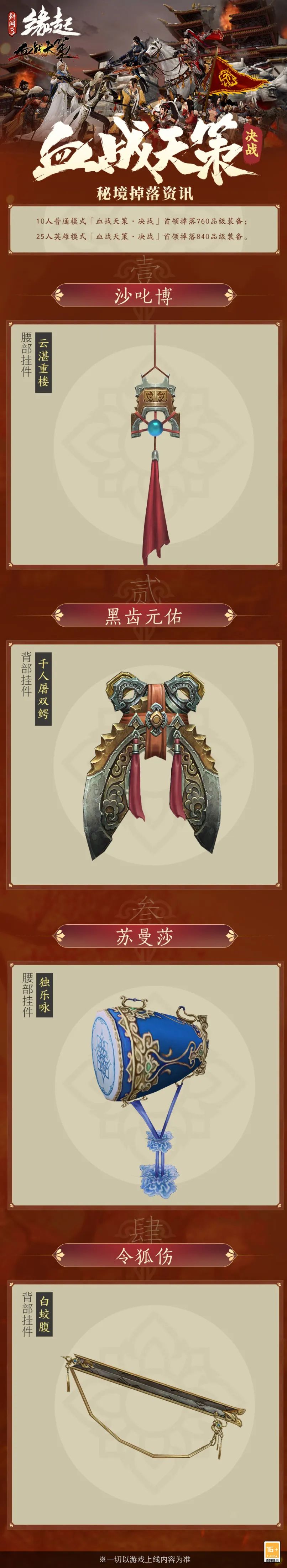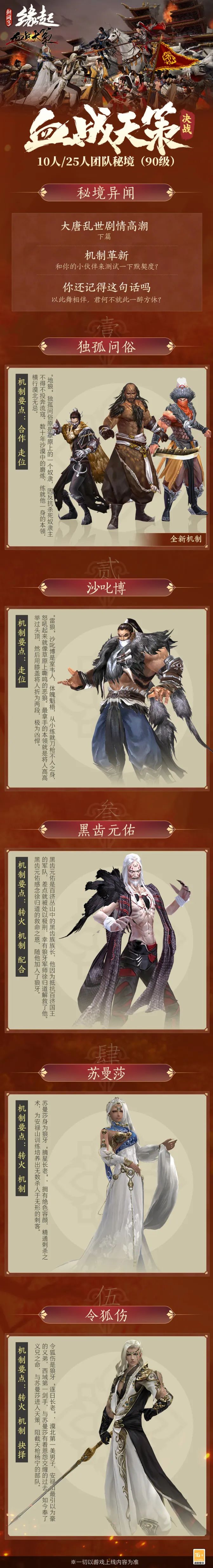 「血战天策·决战」这把一定过! 什么,侠士你还不知道新副本来袭? 全新副本机制 经典怀旧BOSS再就业 特殊掉落挂件来圆梦 海量内容更新不容错过! 「血战天策·决战」首领前瞻 全新团队秘境首领来袭 侠士听过杨宁将军那句“贪狼若欲嚼吾府血骨,先问过我手中长枪”吗?侠士还记得被“狗男女”混合双打的滋味吗?作战前戳大图抢先了解团队秘境「血战天策·决战」五边形首领↓ 全新机制首领「孤独问俗」率先出场,快来测测和你队友的默契度吧~ 经典首领「沙叱博」、「黑齿元佑」、「苏曼莎」、「令狐伤」再就业,给你原汁原味的沉浸式血战天策怀旧体验,还记得当年一起开荒的亲友吗?摇上他们再度团建吧! 「血战天策·决战」秘境掉落资讯 装备品级更新 10人普通模式「血战天策·决战」首领掉落760品装备。 将于本周四开放的25人英雄模式「血战天策·决战」首领掉落840品装备。 新的装备已经出现,怎么能够停滞不前!祝侠士一车就出心仪的装备~ 经典挂件掉落等你拿 25人英雄模式「血战天策·决战」特殊掉落为:腰部挂件云湛重楼、背部挂件千人屠双鳄、腰部挂件独乐咏及背部挂件白蛟腹。 保留最原汁原味的怀旧体验,当年错失的挂件们缘起帮你拿! 更多前瞻资讯,请锁定叶子猪《剑网3怀旧服》官方合作专区。 |
