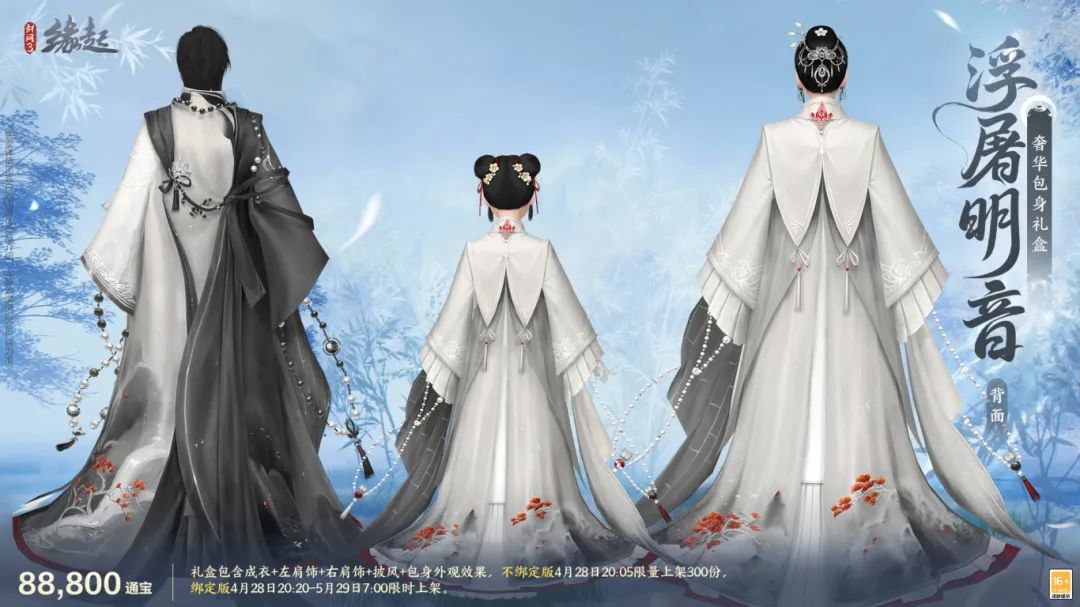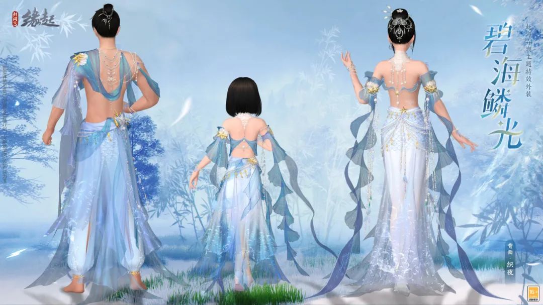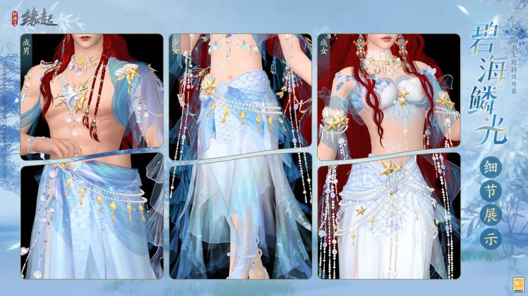 周年新品持续爆料! 传说中你为爱甘心被搁浅~ 赶海弄潮主题特效外装「碧海鳞光」, 灵感来源古老神秘的鲛人传说, 鳞光闪闪,轻柔飘逸; 奢华包身礼盒「浮屠明音」, 蕴藏“留白”美学, 禅意深远,气质出尘! 特效外装「碧海鳞光」潮生珠缀,浪卷鳞光。《剑网3缘起》 全新特效外装「碧海鳞光」于海浪间载沉载浮,浸润着海水的沁凉气息。?流线型衣摆暗藏珍珠光泽,腰际垂落的珠串长链与小巧的贝壳配饰相映成趣,鳞片纹理若隐若现,恍见鲛人初化人形时的惊鸿一面。?成男款剪裁利落勾勒出劲朗身形,成女款则似月下潮水漫过银滩般婉约动人,萝莉款若穿梭珊瑚丛的灵动鱼群,摆尾间漾起欢快的涟漪。?触发特效后,气泡轻盈掠空在指尖流转,风起时光影交错浮动,转瞬消散。 奢华包身礼盒「浮屠明音」?莲台观自在,松烟入禅机。「浮屠明音」取墨白为主色,衣袍形制端肃简朴。 上身云纹隐现,衣摆处群山皴笔晕染,素缎留白勾勒禅意空寂,黑白念珠挂扣银莲悬垂身前,寒梅落蕊点染其上,再辅以细纱提升质感层次,周身似有檀香袅绕,超脱出尘,不著梵音自成菩提风骨。 |