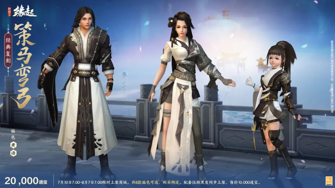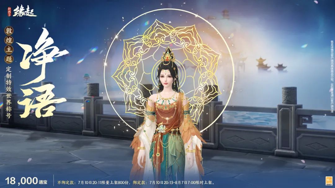 今天是7月8日,星期二。7月新外装爆料来啦!环身特效称号「净语」,月度限定外观「策马弯弓」, 为侠士带来搭配新思路! 7月10日外观爆料第一弹PART 02 特效称号「净语」 壁画金光流转,梵音不语随沙。敦煌主题定制特效世界称号「净语」登场。 特效整体以莲花为形,绘以曼陀罗纹样,于背后缓缓旋转。金色纹样细腻而璀璨,层叠之间光影流转,将千年前的净土佛光,凝结于方寸之间,令人心生敬畏与向往。佩戴时,仿佛正于香莲之上,诵念着来自远古的净语,遗世而独立。 PART 02 月度限定外观「策马弯弓」 弓开如月射天狼,蹄踏飞霜裂大荒。月度限定外观策马弯弓携新色影漪、琢云飒沓而来! 衣衫剪裁凌厉,线条流畅,兼顾行动之便与形制之美,尽显劲疾与飒爽。其间辅以金属搭扣、革带缠绕,以及腾云、卷浪等纹样,刚柔并济,既有唐时武士之骁勇,亦不失士族之风雅。 |