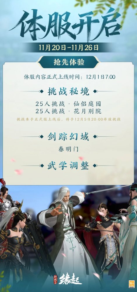 十二月特惠活动正在赶来的路上, 登录即领折扣券、 捏脸半价、 还有精美烟花返场, 不妨来看看活动详情吧! 此外, 测试服今日已开启! 大侠赶紧上线体验新内容吧~ 十二月特惠 捏脸半价/体型自定义半价活动开启,商城常驻发型九折,千面美颜轻松拥有!? 焰火腾光,递与福运。经典烟花限时返场,欢迎侠士前往选购!单笔消费满100元可获得一份限时7天的绑定版烟花“真橙之心”!? 充消好礼再度更新,三倍积分助力,最高档可解锁全新跟宠「小霹雳」。 体服开启 测试服25人挑战模式仙侣&花月开启时间:11月20日19:00,开放后体验服期间每晚19:00-23:59可参与秘境挑战。 剑踪幻域新场景「春明门·幻域」及全门派新一轮武学调整均已上线测试服。 有任何问题及建议欢迎通过体验服Q群及江湖接引人反馈,预祝大家乐享体验服! |