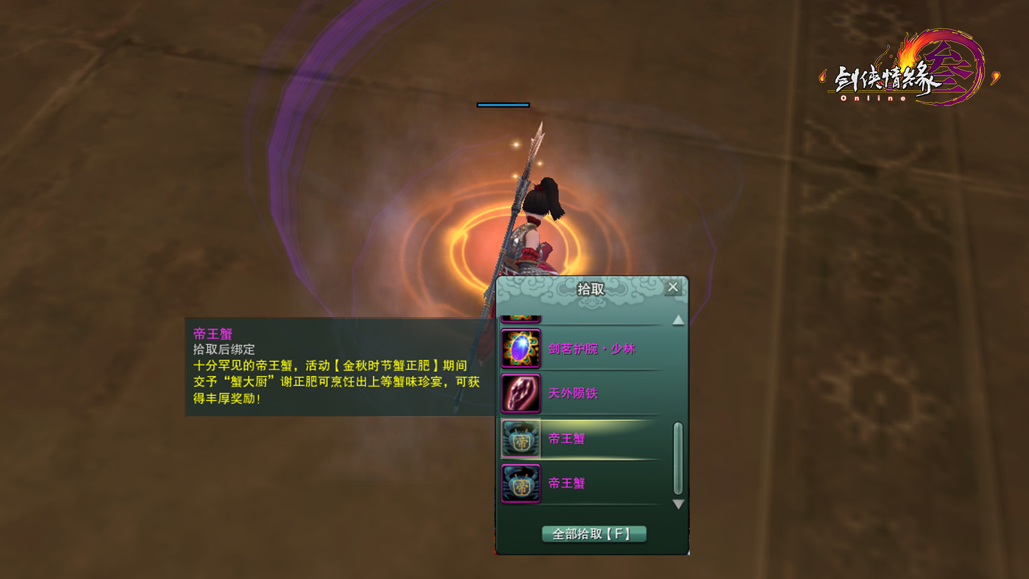 ※每位侠士每日仅可拾取及兑换一次【蟹黄】奖励。
