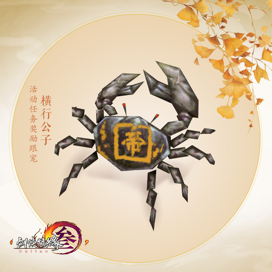 满级侠士每日与百里禾香对话可领取3个【捕蟹网】,前往巴陵县的潇湘岛、南屏山的避水滩、寇岛的清水岛岸边、七秀坊的青萝岛等场景的岸边即可捕捉螃蟹(可交互可击杀的螃蟹均可捕捉)。将捕捉到的【鲜活的螃蟹】上交给百里禾香后,将有概率激活特殊任务【横行公子】,完成后即可获得任务奖励——螃蟹跟宠【横行公子】!