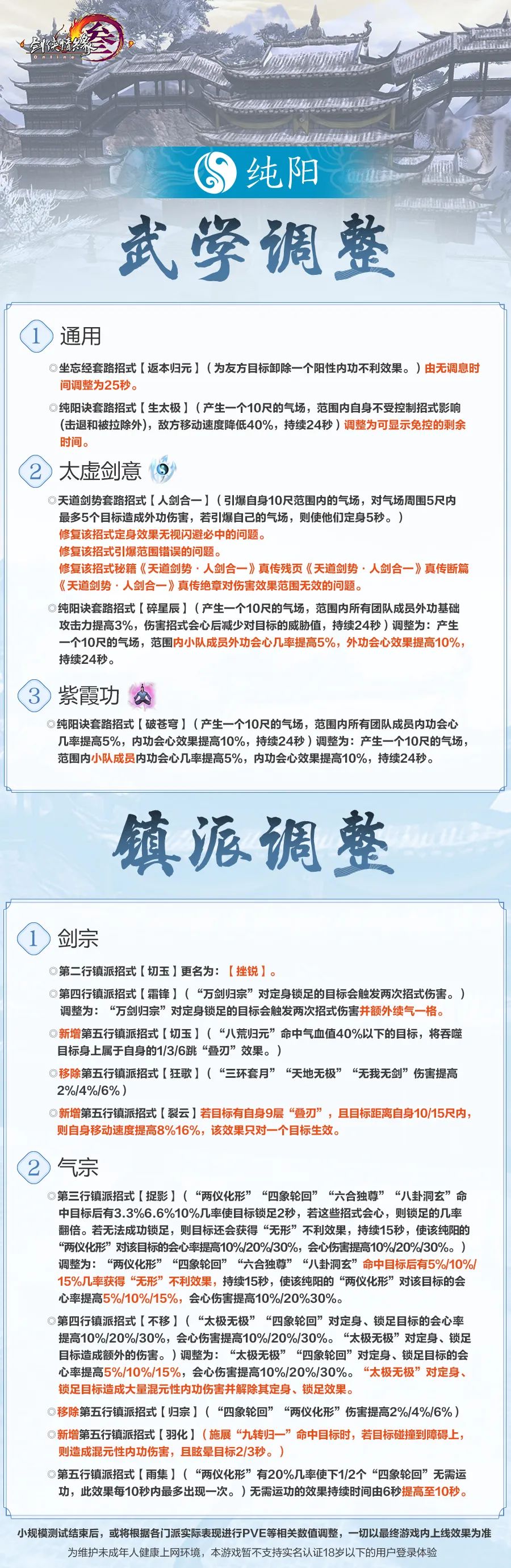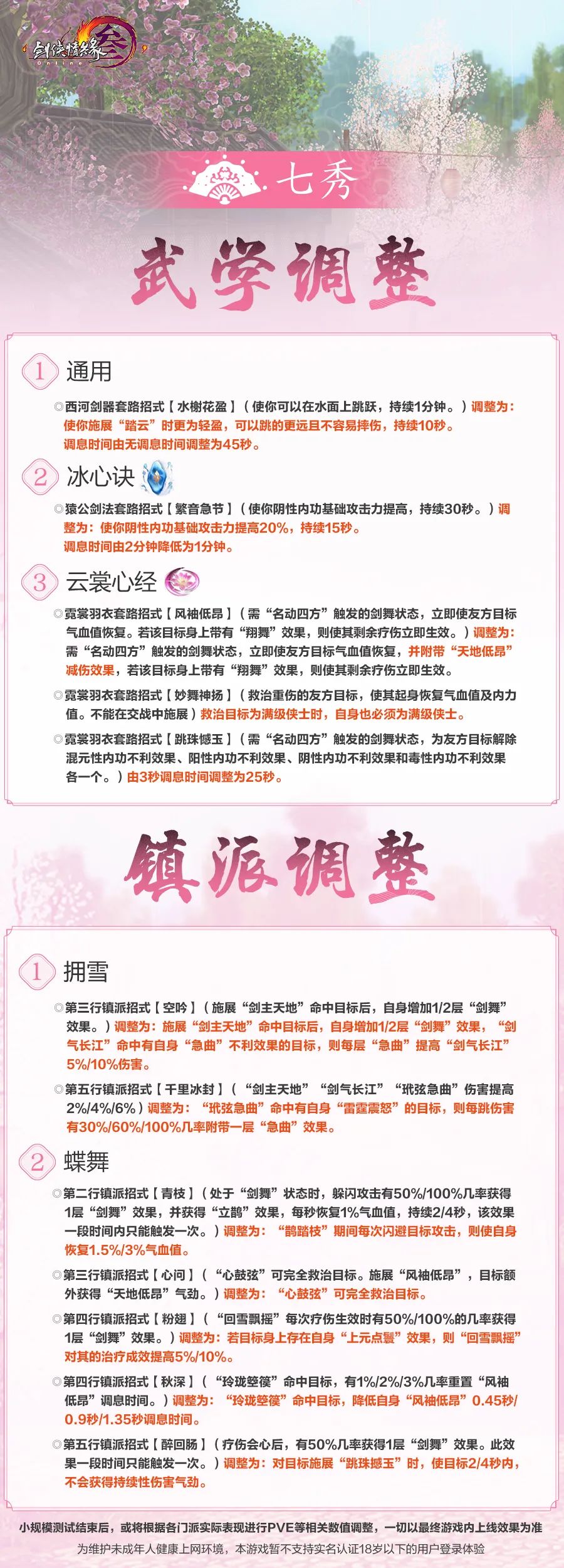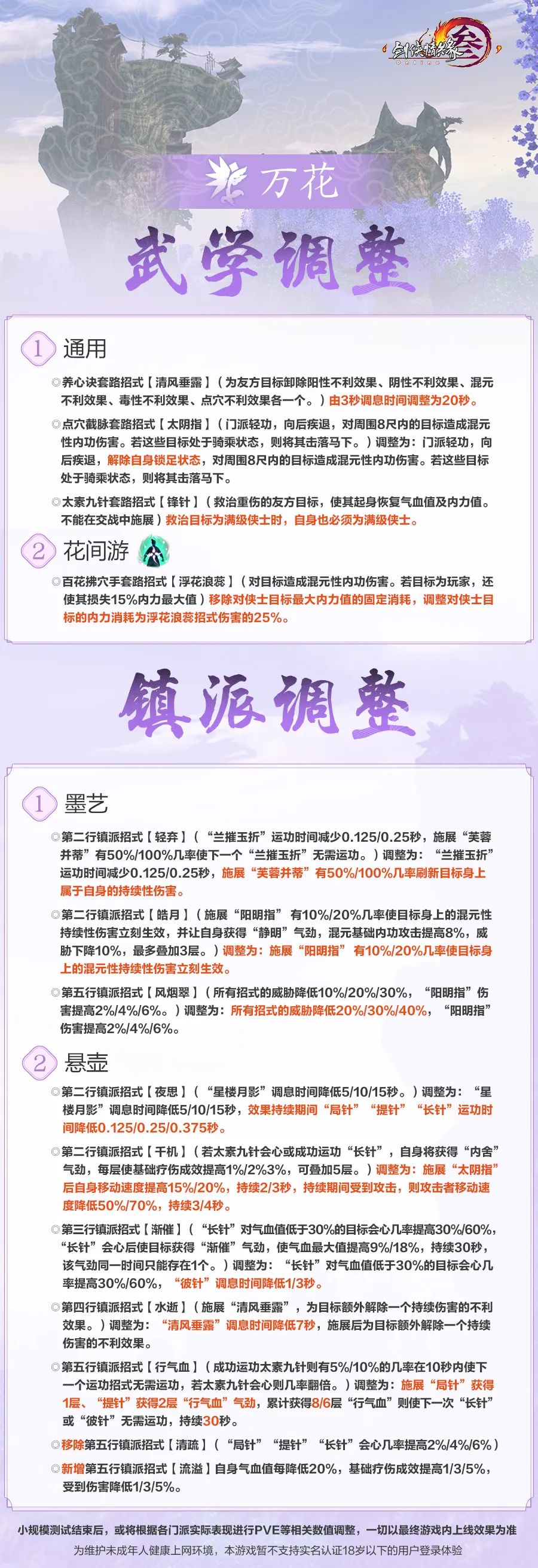 ?(?)?号外号外,今日大唐资讯早、诶,没有早报?等等,这一叠资料是……来,看看小九整理出来的最新情报! 据隐元会消息,近日,首届六大门派武学研讨会顺利进行。全门派武学技能及镇派将有所调整,此次调整将对各位侠士行走江湖产生密切影响,还请诸位仔细阅读并勤加练习~ 武学/镇派调整 测试结束后,或将根据各门派实际表现进行PVE等相关数值调整,一切以最终游戏内上线效果为准。 小九贴士: ①3月11日将开启小规模测试,可抢先体验调整内容,欢迎大家参与体验,游戏内点击shift+h即可进行反馈! ②点击文章末尾的【阅读原文】传送官网,今天下午15:00将在该页面更新体验服客户端下载地址。 以上就是关于剑网3怀旧服门派改动全部内容,想了解更多门派资讯,请关注叶子猪剑网3怀旧服官方合作专区。 |