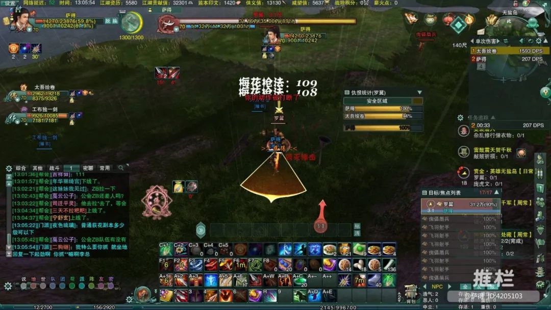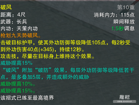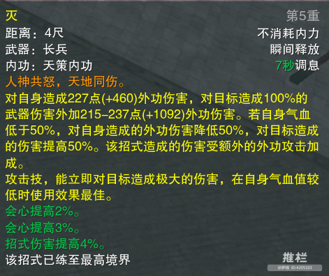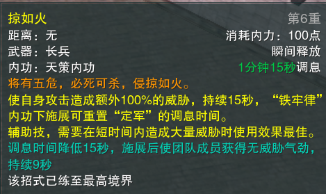一、仇恨机制讲解(如何拉仇恨) 仇恨值与仇恨目标:剑三的怪物在攻击时,会以当前仇恨列表中的第一仇恨目标作为攻击对象,玩家每次使用技能都会怪物造成仇恨值,简单来说,谁仇恨值最高,怪物就打谁,所以T拉仇恨就是确保自己的仇恨值最高,让怪物打自己。正常情况来说,T的技能都会额外附带大量的仇恨值,并有不少强仇技能,所以不需要担心拉不住仇恨。 OT与强仇技能:当DPS造成的仇恨值超过了T并超过了T的120%时,怪物会将其认为是第一目标,这也是大家说的OT(仇恨失控),此时铁牢使用定军可以在6秒内使自己强制成为怪物的1仇,且将之前仇恨最高人的仇恨值复制。这也是定军的正确用法——开怪以后尽量捏在手里等有人快OT了再定军,这样复制了快OT人的仇恨,让自己的仇恨总量建立的更稳。 以图为例,正常情况下,T的仇恨是在第一位的,DPS在第二位 当DPS仇恨开始打高,超过了T,达到115%时,BOSS的目标仍然是T,此时已经濒临OT的临界点120% T使用了定军强制嘲讽,将DPS的仇恨复制了回来,可以看到仇恨列表里DPS的仇恨值回到了T的100%以下 当T使用定军后,由于存在6秒内的强制攻击效果,所以哪怕DPS的仇恨值达到了T的300%,怪物的攻击目标仍然是T!当然,一旦定军的强制仇恨效果消失,怪物会立刻以OT的DPS作为第一攻击目标。 无威胁气劲:以天策的掠如火为例,使用后重置定军的CD,且自身造成的仇恨值加倍,同时更重要的是,全团剩下24个人此时获得引羌笛BUFF:不会造成仇恨!掠如火与和尚的狮子吼一样,都是团队中的仇恨神技能,天策开BOSS只要上来正常开火无脑破风,基本10秒过后仇恨值就很稳定了,队友很难OT。而且掠如火不需要开阵,不需要阵眼,用了就生效~PS:经过笔者测试,掠如火、狮子吼等技能带来的无威胁气劲,必须小于30尺范围内的队友才能吃到!29.9尺可以,30.0尺就不行。 双拉技巧: 天策虽然群拉不行,但是由于定军的短CD和破风的稳定无脑上仇恨能力,所以不断的依靠TAB键切换目标双拉还是比较轻松的。一般来说天策在双拉两只小怪的时候,一人一个定军+破风,接下来主要给一只打破风,给另一个依靠定军的强制仇恨给复制仇恨并强行拉住,并且不断的观察仇恨列表,一旦一只的仇恨基本上稳了,就换目标给另一个打破风,这么雨露均沾就实现了双拉。至于三拉……也基本差不多,也是依靠TAB键来回疯狂切换上仇恨,但是到这里难度就确实比较大了,三拉如果实在拉不住,铁牢T也不需要太介意。 二、基础开BOSS连招教学 常规流程:挂扶摇(备用减伤技能)→对一个队友使用渊(10秒双倍仇恨增益)→突BOSS(快速近战,可疾到侧面再突防止BOSS面向不对)→定军→开火→定军→无脑破风→视情况打灭、开减伤→仇恨彻底稳定前留定军防止OT→无脑破风/灭…… 讲解:以上是开BOSS的一个基础连招。很多新手T对于最基础的仇恨机制还没有一个基本概念,每次都是上去无脑定军破风,相信不光新手,大部分老手铁牢都是不管仇恨列表定军从一开始就好了就用。如果是装备成型的铁牢,在现在团队本难度简单的情况下这样也就罢了,可对于新手T来说,本来装备手法就不到位,无脑这么打毫无疑问是拉不住仇恨的。正确的做法是在仇恨彻底稳定前,留着定军,当有队友仇恨值开始超过100%以后,再使用定军复制其仇恨,这样仇恨会上的非常快,也不会OT,哪怕T的装备比较差,也能让仇恨非常稳定。 与此同时,目前我甚至没有见过有几个铁牢天策在开BOSS前用渊!实在让我无法理解,这么一个开局双倍仇恨增益的神技竟然没人用……个别BOSS有面向要求,原地给队友渊,接着疾到BOSS侧面,然后突开怪就可以了,非常有效! 三、铁牢技能解析 仇恨类技能 破风:秘籍2CD+2威胁。铁牢拉仇恨的基础技能,由于可以1.5秒用一次,所以铁牢天策拉仇恨比和尚简单太多,无脑破风一直用即可。 破风可以给BOSS挂5层,带来大量额外的破防值,因此很多BOSS有了铁牢天策保持的5层破风,外功DPS会打出来更高的伤害~以宫中谢云流为例,P1铁牢哪怕是在换T阶段,也可以时不时的去谢云流背后打破风保持5层效果;在P2阶段剑阵都消灭后,铁牢也可以去帮近战给谢云流挂满5层破风进行辅助~ 定军:天策的唯一强制仇恨技能,CD短比较灵活,招架成功后有45%几率刷新CD,同时开火以后可以刷新定军CD。在刚开BOSS建立仇恨阶段,定军建议捏在手里看谁快OT了再用,复制仇恨从而防止OT。 灭:秘籍1CD+2会心+1伤害。铁牢的又一个基础拉仇恨技能,需要点出来镇派才有附带仇恨值效果,没有蓝耗,个人观点无论点不点镇派用灭作为基础仇恨技能都可以。 穿:秘籍2CD+2目标。铁牢的群拉仇恨技能,点了镇派以后附带少量仇恨并增加目标距离与人数,配合掠如火造成的无威胁气劲可以短时间内群拉10个目标,不过天策的群拉不是强项,所以不用强求。 沧月:新手慎用的技能。尤其在10人副本中。击倒目标并击退周围目标,很多10人本的拉脱往往是沧月造成的。但是25人的小怪不会被苍云击退,所以可以看情况配合穿进行群拉,虽然效果一般,但是聊胜于无。 突:秘籍2CD+1距离+1伤害。基本作为近战技能使用,快速接近BOSS。 崩:功能性技能,目前的主要作用是打断25人战宝锤兵的群控技能“地动山摇”与老六餐风的回血技能“餐风饮露”。其中锤兵的地动山摇只有天策的崩能打断,可以说是每一个铁牢天策都必须做到的基本功了。 虹气长空(飞镖):秘籍3命中。无论天策还是和尚