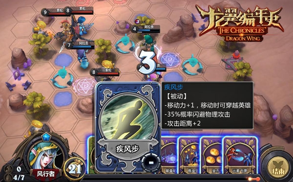 [2]疾风步——移动力+1,移动时可穿越英雄;5%概率闪避物理攻击;攻击距离+2。 类型:被动技能 “疾风步”为被动技能无需触发,此技能大大增加了风行者的移动以及攻击范围,使得风行者的使用灵活性大大增加。 希尔沙原本就具有极高的移动能力以及较远的攻击距离,在装备了被动英雄技能“疾风步”之后这两个特点进一步得到提高。这就使得在搭配群体伤害技能“穿云箭”后可以更加好的发挥出了作用。再搭配远距离攻击的普通技能可以在对方还未靠近时就已经进行了击杀。 在战斗中,每位英雄只能同时拥有两个技能,玩家可以在战斗准备以及英雄复活时进行选择设置。 |