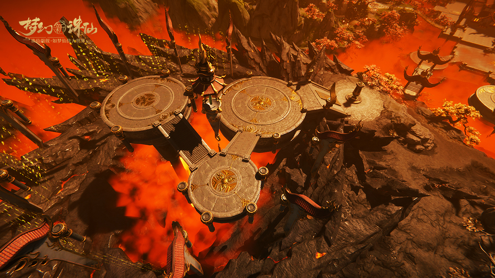在其南侧,玄火坛矗立在一片火海之中,有数柱奇岩从火海中拔然而起,巨木攀附,枝叶繁茂。更有奇岩被雕刻为两条八荒炎龙,威武庄重,镇守在玄火坛入口处。